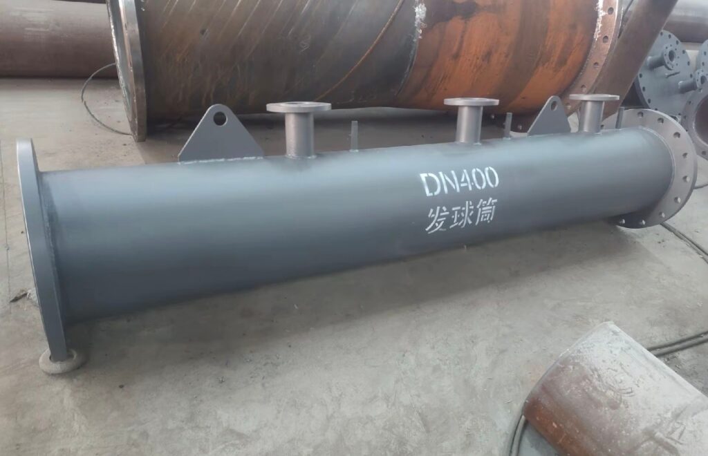 This low-temperature structural steel pigging device0. has a nominal diameter of 250mm for the main pipe and 150mm for the reducing end, a straight section length of 2000mm, and an overall net weight of 483kg.Specifically, this specification is primarily designed for small-to-medium diameter gathering and transmission pipelines.Moreover, the 2000mm cylinder length provides ample space for the pig, preventing loading jams.Meanwhile, the 483kg net weight balances wall thickness allowance under low-temperature conditions.Thus, it ensures ease of on-site hoisting.